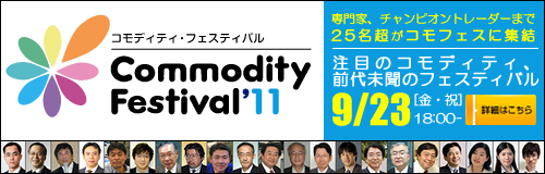 この度、東工取、東穀取、及び日経ラジオ社との共催により、コモディティに関連・従事されるスペシャリストの皆様、そしてコモディティという共通の目的を持つ個人投資家、メディア関係者などを一堂に会したコモディティ交流会「コモフェス2011 in 東京」を開催する運びとなりました。弊社は運営・企画で携わっております。