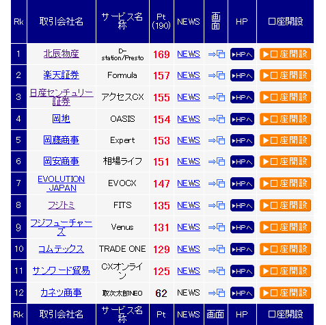 ▼商品先物ネット取引総合レーティング・ランキング(12/11現在)
