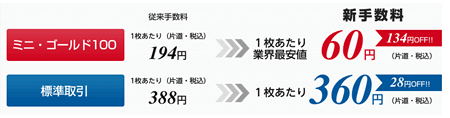 ▼4月から手数料が新しくなります!ミニ・ゴールド100は業界最安値!